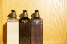 充実したアメニティをご用意しております。洗面ボウルが2台設置されておりますので混雑することなくストレスフリーで用意して頂けます。