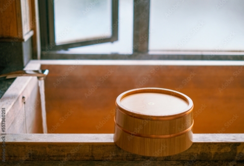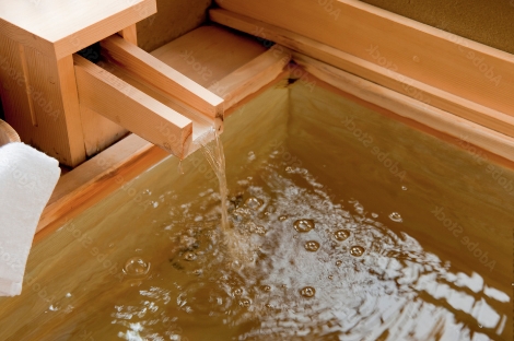 檜風呂でリラックス